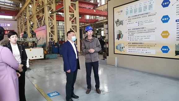 三江机械总经理王盟简要介绍了公司发展情况,重点向孙述勤主任等相关领导介绍了平锻机的应用范围、市场前景和典型案例,并阐述了公司未来的发展规划和目标。